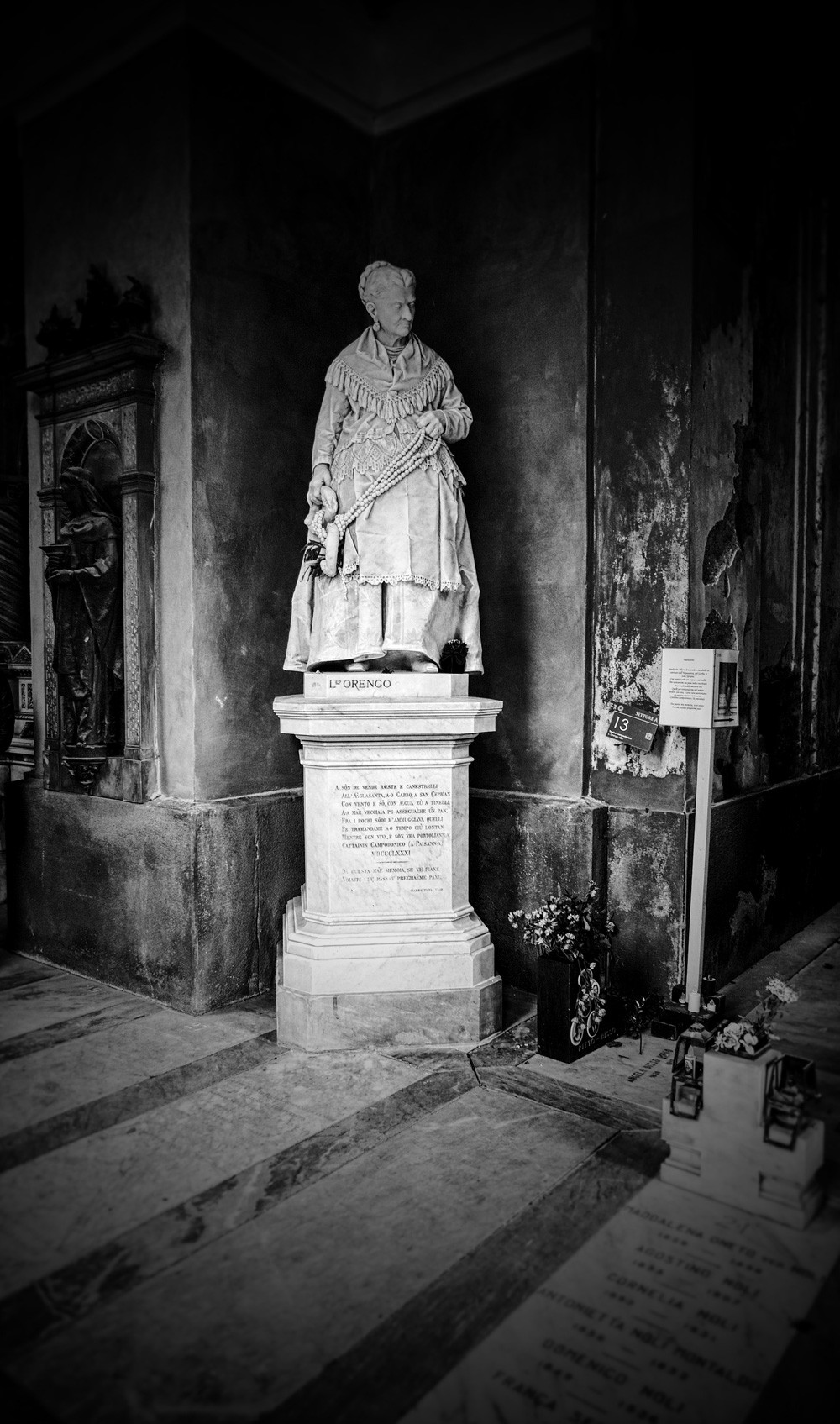 One touching anecdote is that of the peanut seller, Caterina Campodonico, a woman of humble origins who died in 1882. So keen was she to thwart her greedy relatives that she employed Lorenzo Orengo, a famous sculptor of the day, to make a statue for her grave which resulted in all her money being spent on the commission.