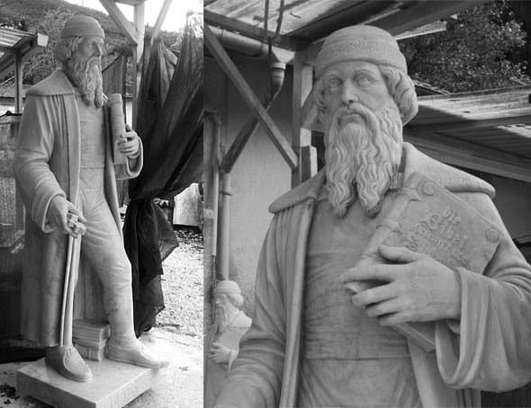 Christian also teaches sculpting courses and has his own apprentices. He reflects on the new technology acknowledging that an air hammer or electric powered chisel, ubiqitous in sculpting today, would be considered a devil's tool by the artisans of a hundred years ago. He laments the dearth of young apprentices coming up the ranks. In his day, he says ‘the apprenticeship was three years where we worked only by hand. No electric power tools, no air pressure, everything with really very old-fashioned hand-tools. Slow. But for learning, I still believe that learning something slowly is probably better.’