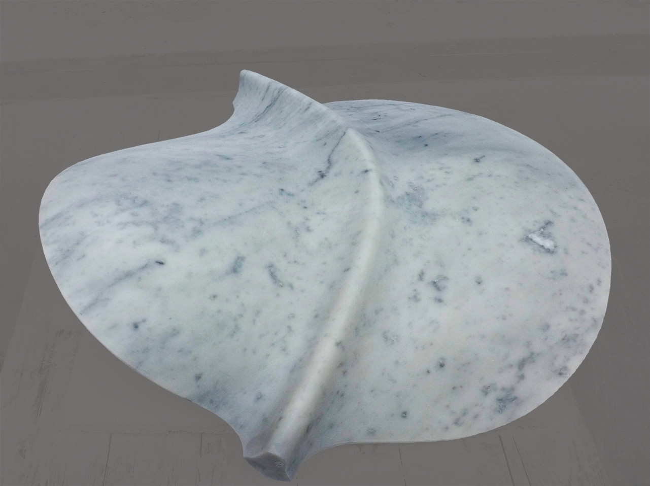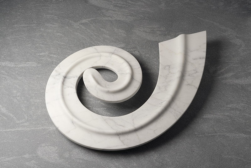 Cynthia Sah:One thing I learned for a marble piece to stand safely and securely, you need a spine. Some of my pieces are very thin. One piece that I call fern, because it’s like the tip of the fern, it has the spine that curls into a circular movement. And everything has a spine, even if you look at the form of a leaf or form of a petal. They all have a spine, an inner structure that keeps them together.