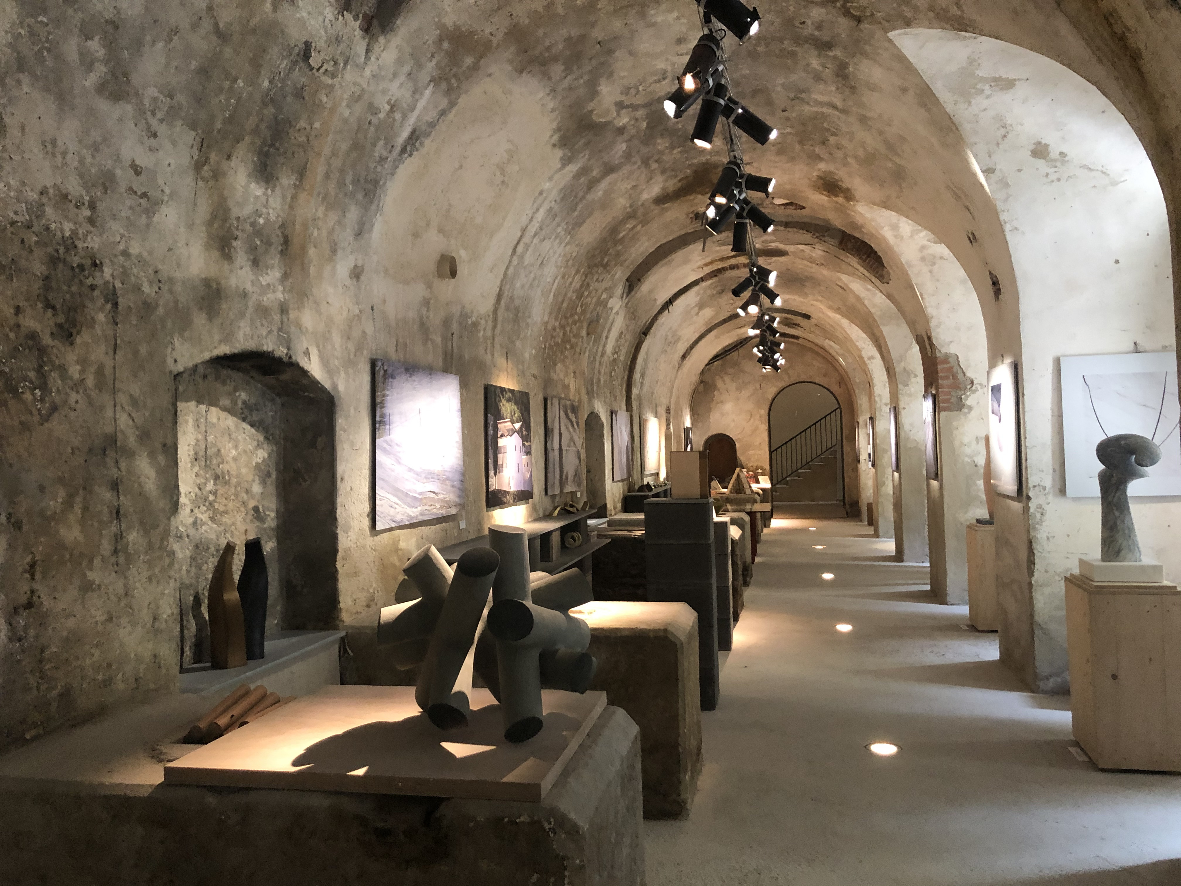 Finally Cynthia takes me to their basement, and what was originally a trout farm feeding the Medicis in the Palace opposite. This breathtaking long gallery is now their exhibition space, where they host events for their non-profit foundation, Arkad.