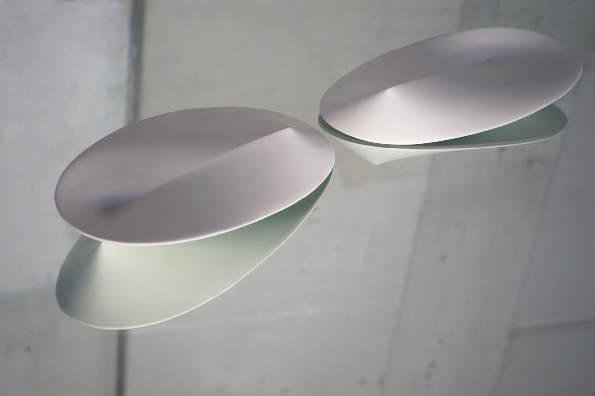The relief, A5B.2, was inspired by photographs from the Hubble deep space telescope of two extraordinarily thin galaxies, NGC 4452 and OPO 0624. Badriah created a heightmap of the visual data and based a sculpture on it’s features. The work re-materializes the far-away light sources to throw a rippling onto the physical surface.