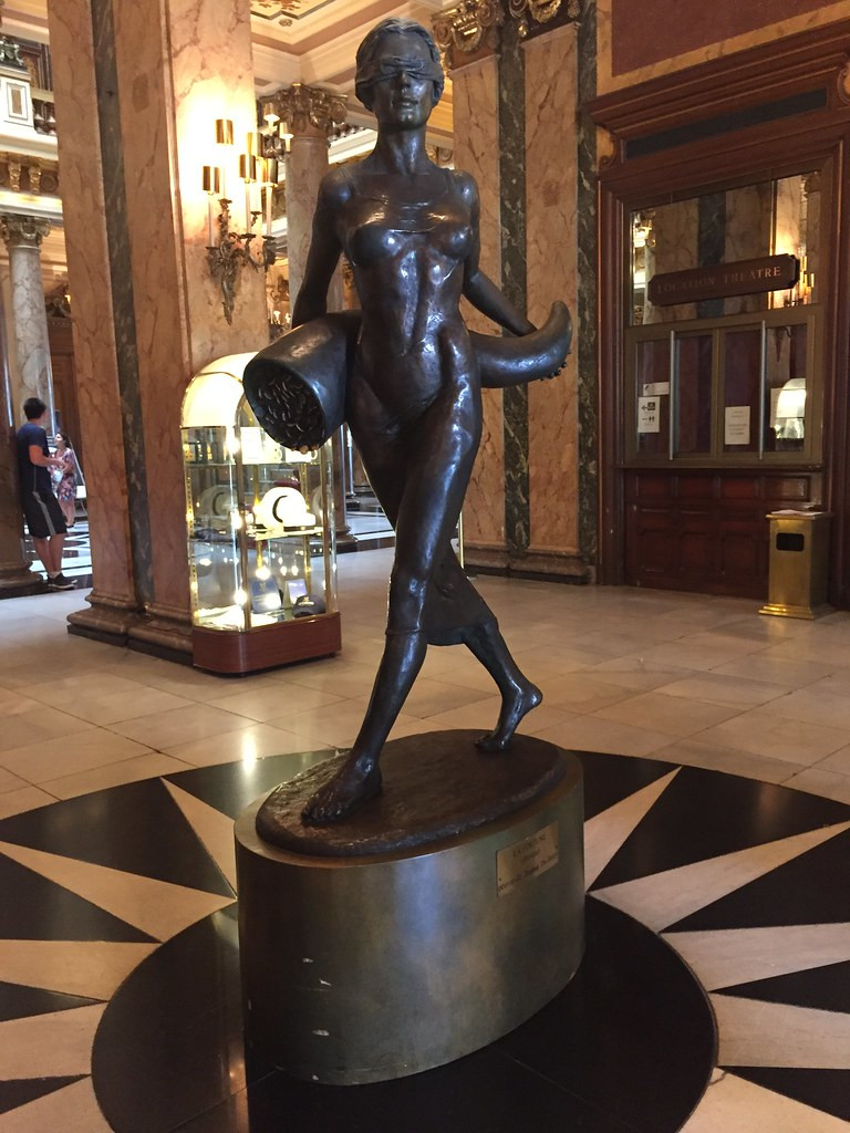 And John the Baptist for Malta. And I did for the casinos of Monte Carlo, the Lady Fortune. The Fortune with the horn of abundance. And she’s blind because you never know when the fortune arrives and when it goes. So when the people go to gamble, they touih the horn of abundance and all the coins that come out or golden coins. And to symbolizes the fortune, everybody wants to become fortunate in a way. The way can be in a material way, coming in a spiritual way. It arrives, I always say it rises with the legs of, what do you call those animals that have their house on their -