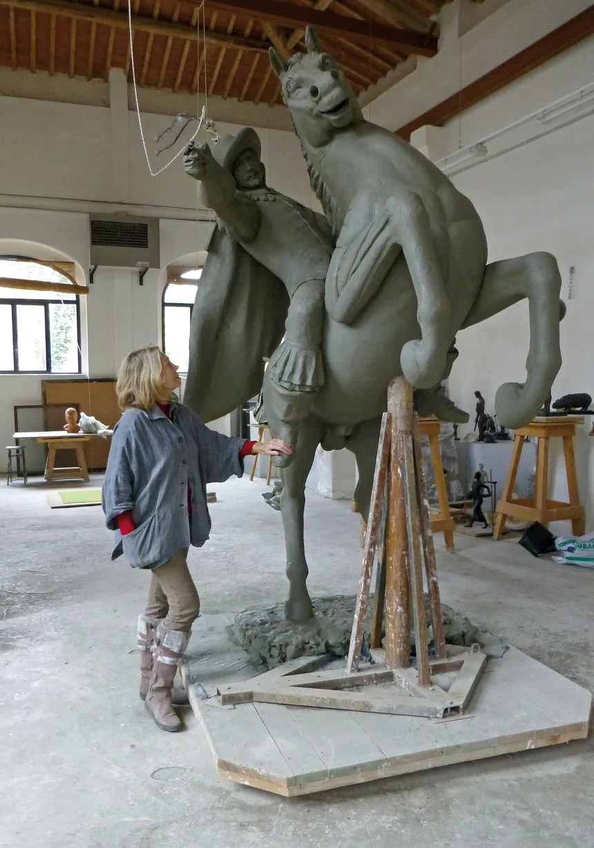 And then the year that I lost my husband, that is 10 years ago, I said to Jean Claude, you know what, I’m going to realize all the things that you still would’ve loved me to do. The monument of d’Artagnan. And I presented this smaller model in Gascony, to the Mayor and they loved it. And he saieah, that would be fantastic, but we need sponsors because can you imagine it’s had some huge cost, and I believed so much in it. I said, Well, I have to make this statue. Said okay, you find a sponsor. I said, Well, I’m not going to wait. And then I met the man. When he saw my model, he started to cry. And they said, Why are you? Well, I’m born here and all my life as a child, I was dreaming of statue of d’Artagnan on horseback. And you are realizing my dreams.