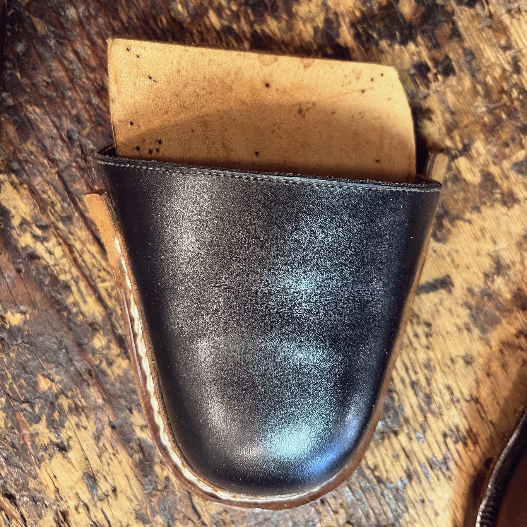 The box calf leather I get from France, there is a wholesaler in Milan I contact for. Then the sole leather, I actually changed quite recently. I found this very near tannery. It’s in the area of Pordenone, Porcia, it’s Presot and it’s a traditional company, but there are two brothers and young woman conducting the company and it’s a very nice, sustainable way of looking at this archaic product really. They have winning prizes about no waste. They have a whole recycling of the water, making their own energy for the machines. It’s a all natural product and they have workers from other continents, from Africa. Having a proper contract, they have the chance to have their own garden cultivating vegetables and having chicken for the accent. It’s very, very up to date, this company. I think it’s very sensitive the way they bring it in these times. I got this and it’s really good leather and that’s for the soles and for the reinforcement.