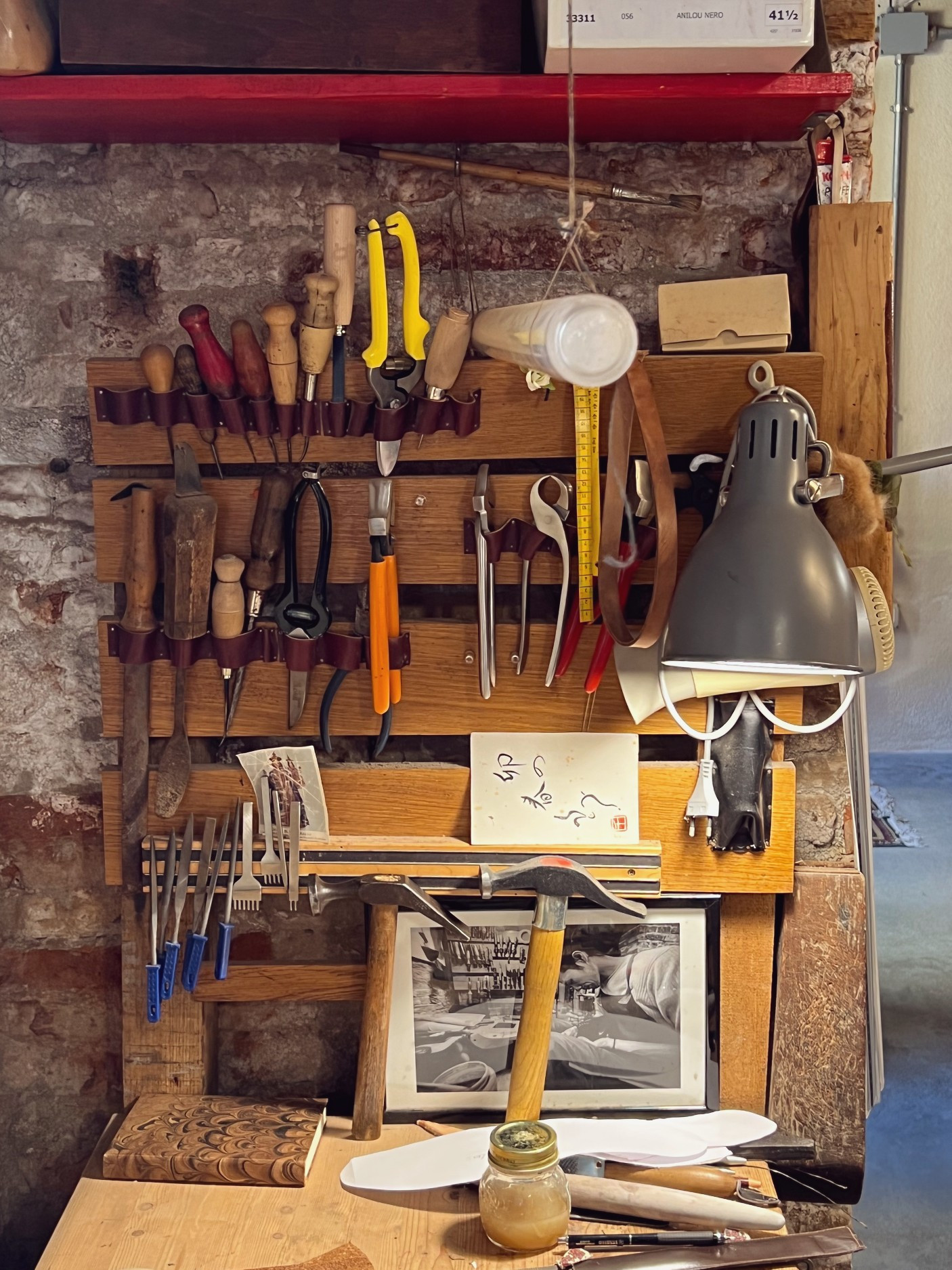 I was working for a shoemaker and then I went away and came back because I wanted to make an exhibition in his workshop. I have another project in Japan realized and that was the moment that he wanted to get rid of his workshop. He asked me, "Do you want to take over? There is another person interested, why don’t you do it together?" I said, "Wow. I don’t know. I think about it," and actually we found out that the other person, we would have different ideas and it wouldn’t work. But in this time I was helping him as well to get to his orders and this time I found this, my workshop, it was vacant and I could rent it and I said, "Why not Venice?" I think it was quite interesting. I never said, "Oh, one day I want to make be shoemaker in Venice."