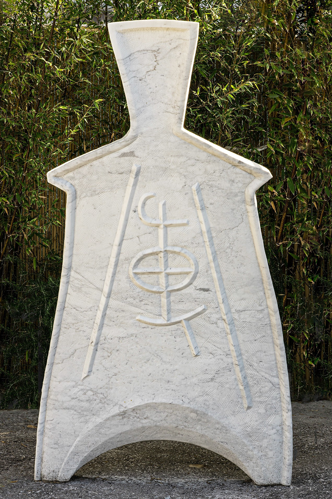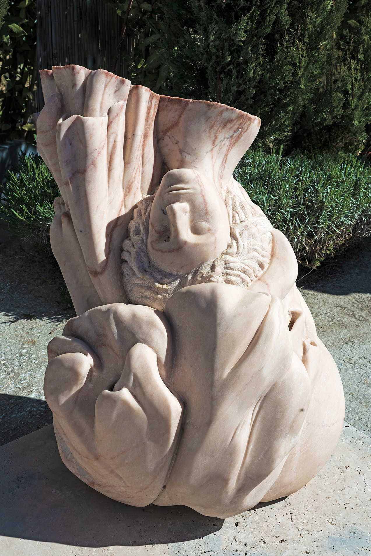 John Greer, The Rose, 2021, Portuguese marble and travertine, 70 × 37 × 42 cm