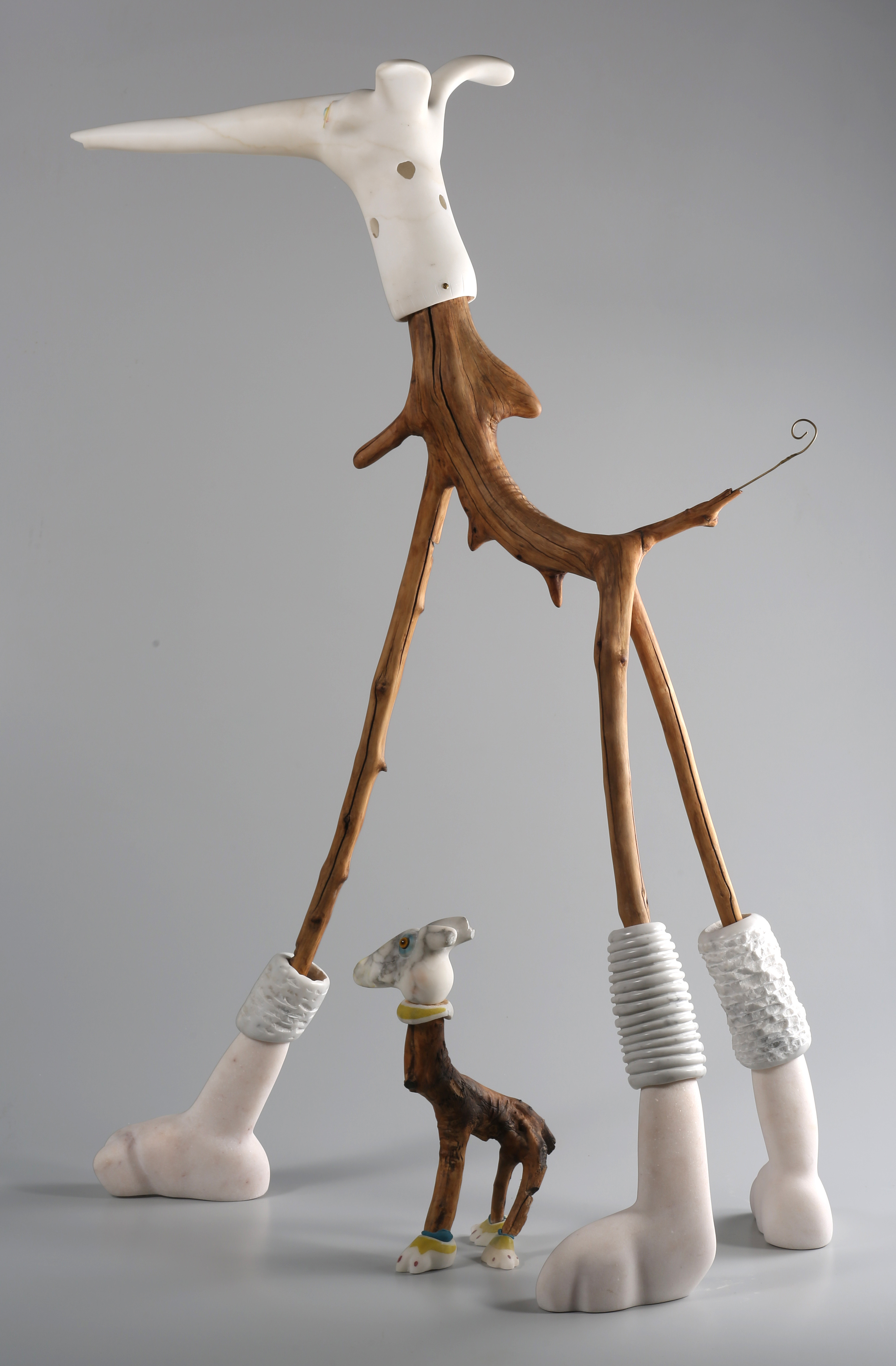 Neal Barab:Yeah. They got names? Big dog and little dog are marble and olive wood, and the olive wood is taken from my own olive trees. I have 40 olive trees on a terraced hillside just few kilometers from my studio. And when I’m doing what’s called the potatura or cutting the trees lower every couple years, I’m always looking for bits that might end up being part of an interesting sculpture.