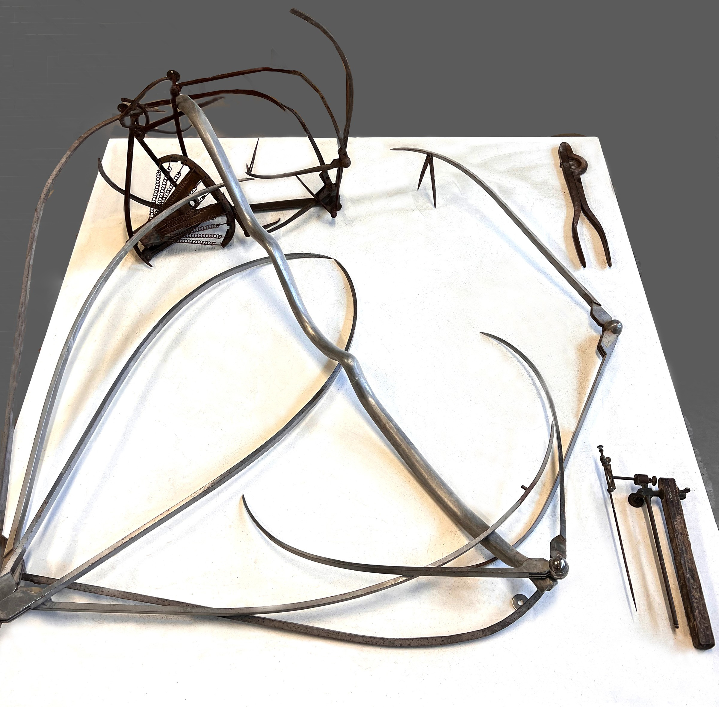 Ron Mehlman:Yeah. And the idea was to make a drawing, a three-dimensional drawing, in metal using parts that make in which an artisan would use to copy a sculpture. What you see here are a sculpture drawing, a composition made of tools. Some are handmade calipers. Some are new.
