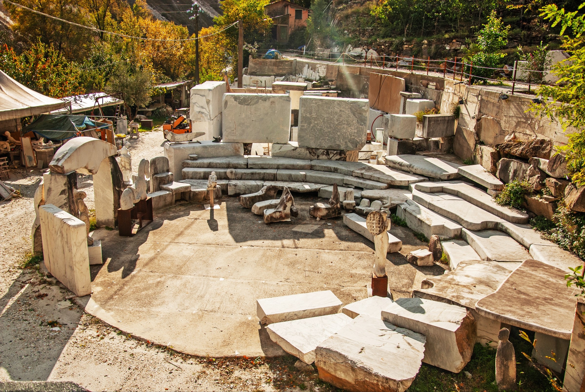 Usama’s studio space, and home, is tucked away in the shadow of the statuario marble quarries. Usama bought the space in this historic marble area because he felt an urgency to build a stone amphitheatre there. Initially he dismissed the land because he feared flooding. But he worked non-stop his first winter to build his theatre.
