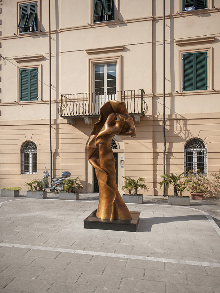 Flame (below), is part of the outdoor exhibition of art in Pietrasanta placed on Via Oberdan.