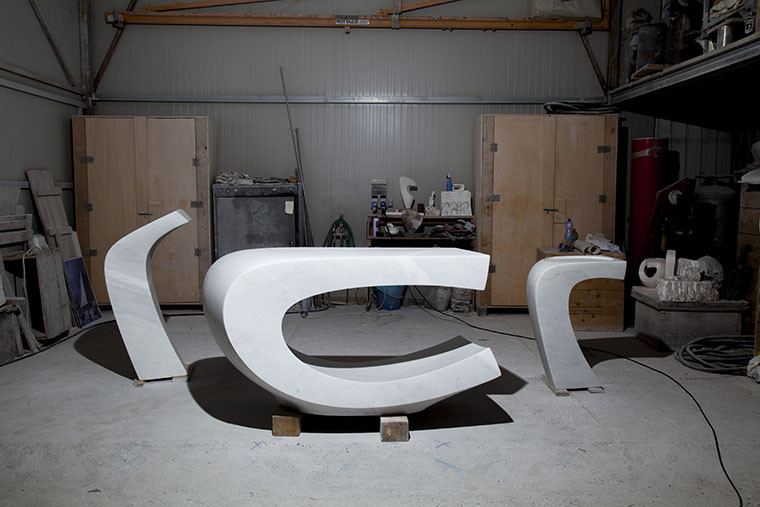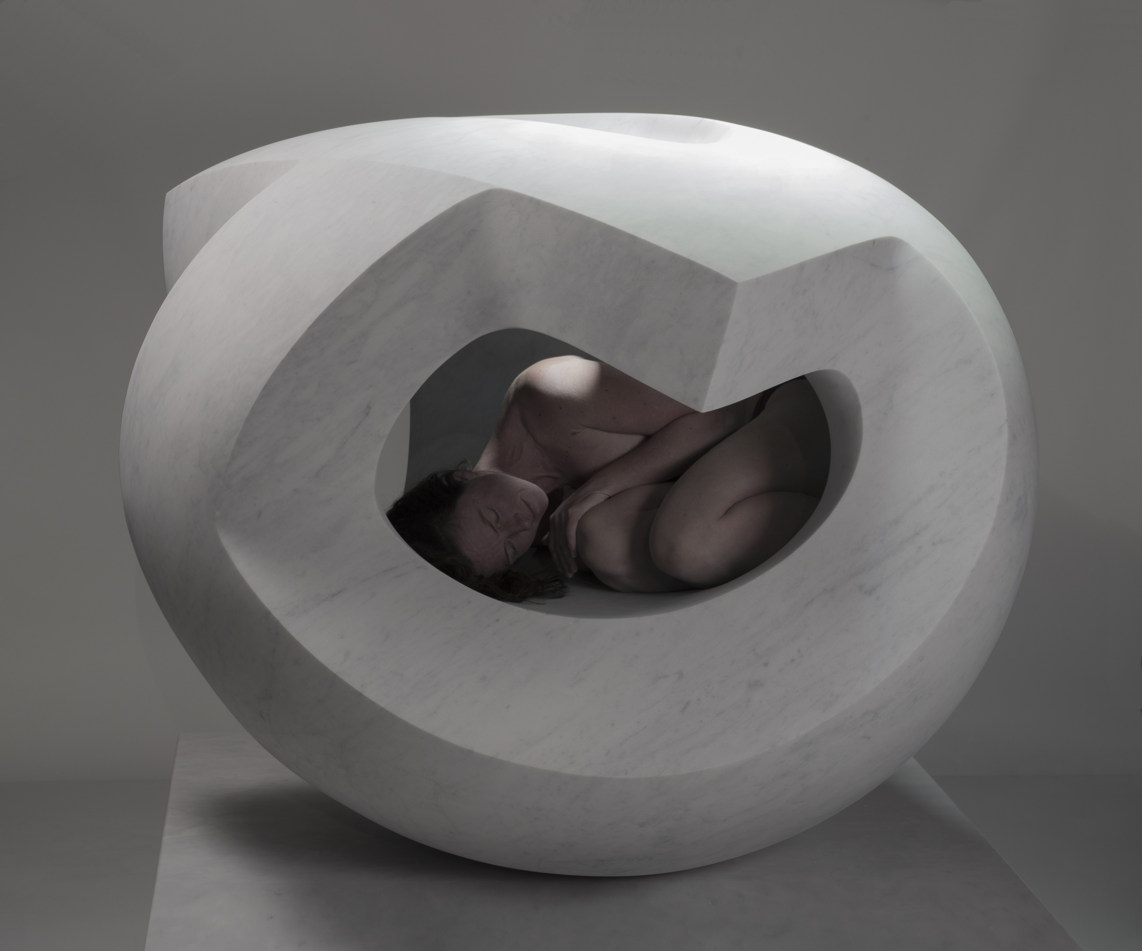 Julia Vance, HOLD #2, 2013, white Italian marble, 160 × 140 × 140 cm. Photo: Stefano Baroni
