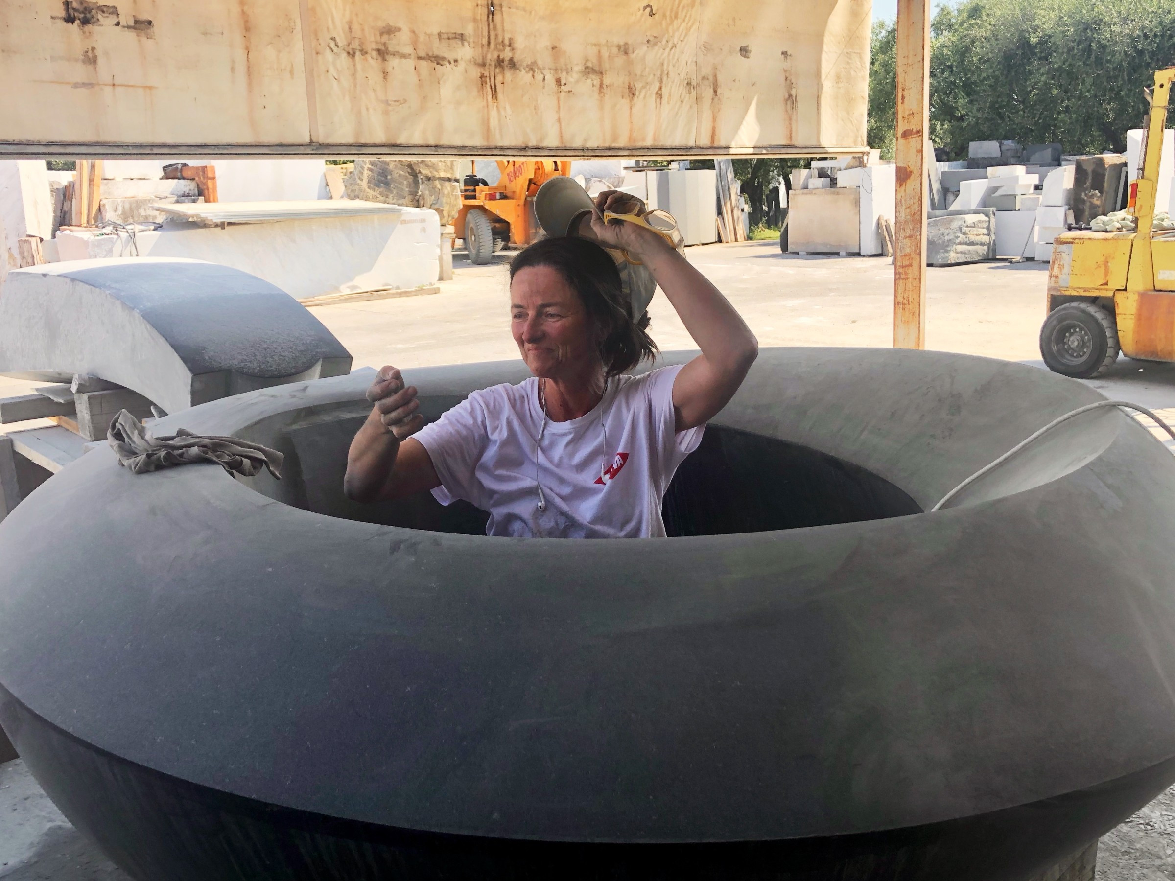 Julia working on Passage to Knowledge at Studio Georgio Angeli, Querceta