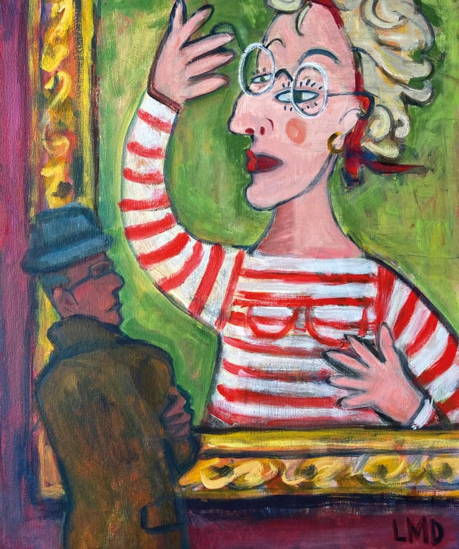 As a great, great granddaughter of writer Charles Dickens, writing plays an important part in Lucy’s life. Her paintings often have a narrative quality, leaving you wondering what went before, or what will happen next. As well as humour, her recent work contains a lot of vibrant colour and exuberance.