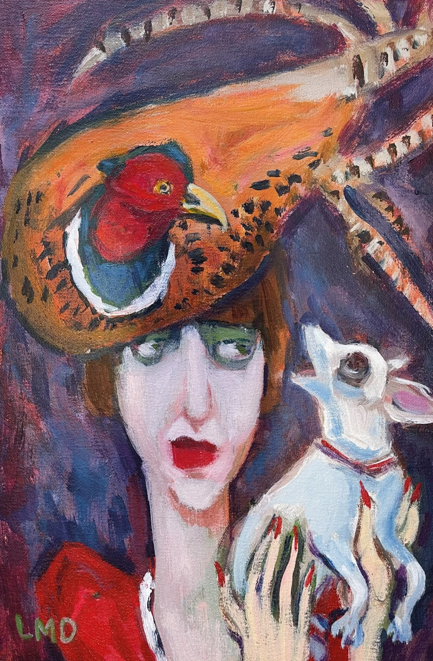 Lucy Dickens, Girl in pheasant hat (remembering Isabella Blow), 45 × 30 cm
