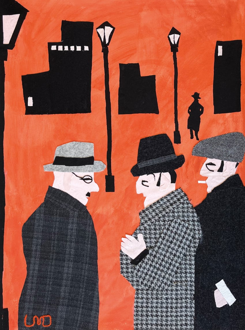 Lucy Dickens, Smiley’s people, collage and gouache on watercolour paper, 76 × 56 cm