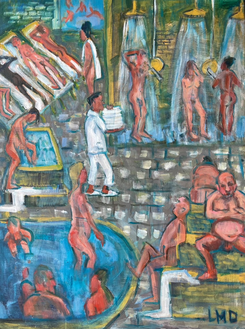 Lucy Dickens, The towel attendant, 101 × 76 cm