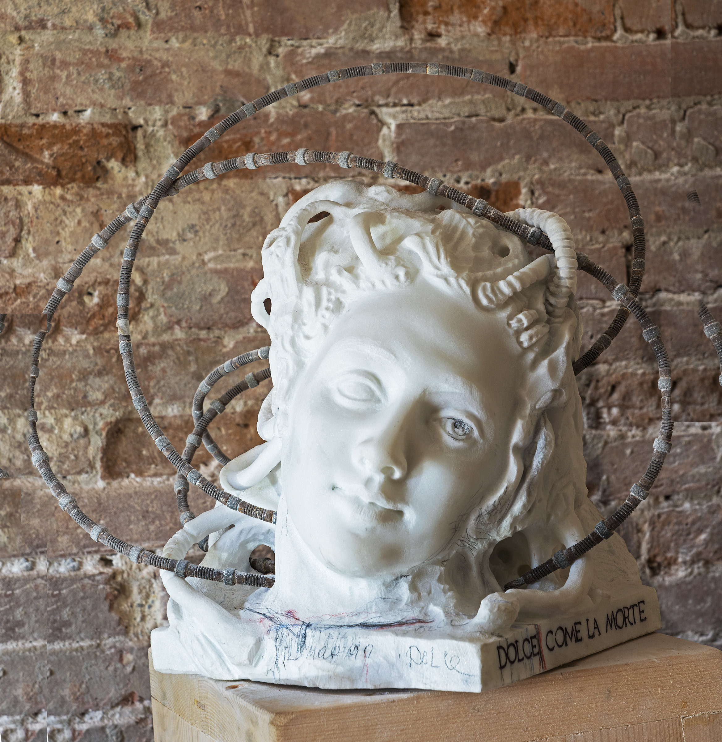 Marianna Blier:So for me because for me, marble is not hard materials. It’s very soft and it’s very tender material. So this is one part of the phrase, and then it becoming the other, but it can be written together. Sweet like the death. And but also you can read So the idea that marble is a suite like this, but this, again, it’s related to this ability not to kill but to turn into stone.