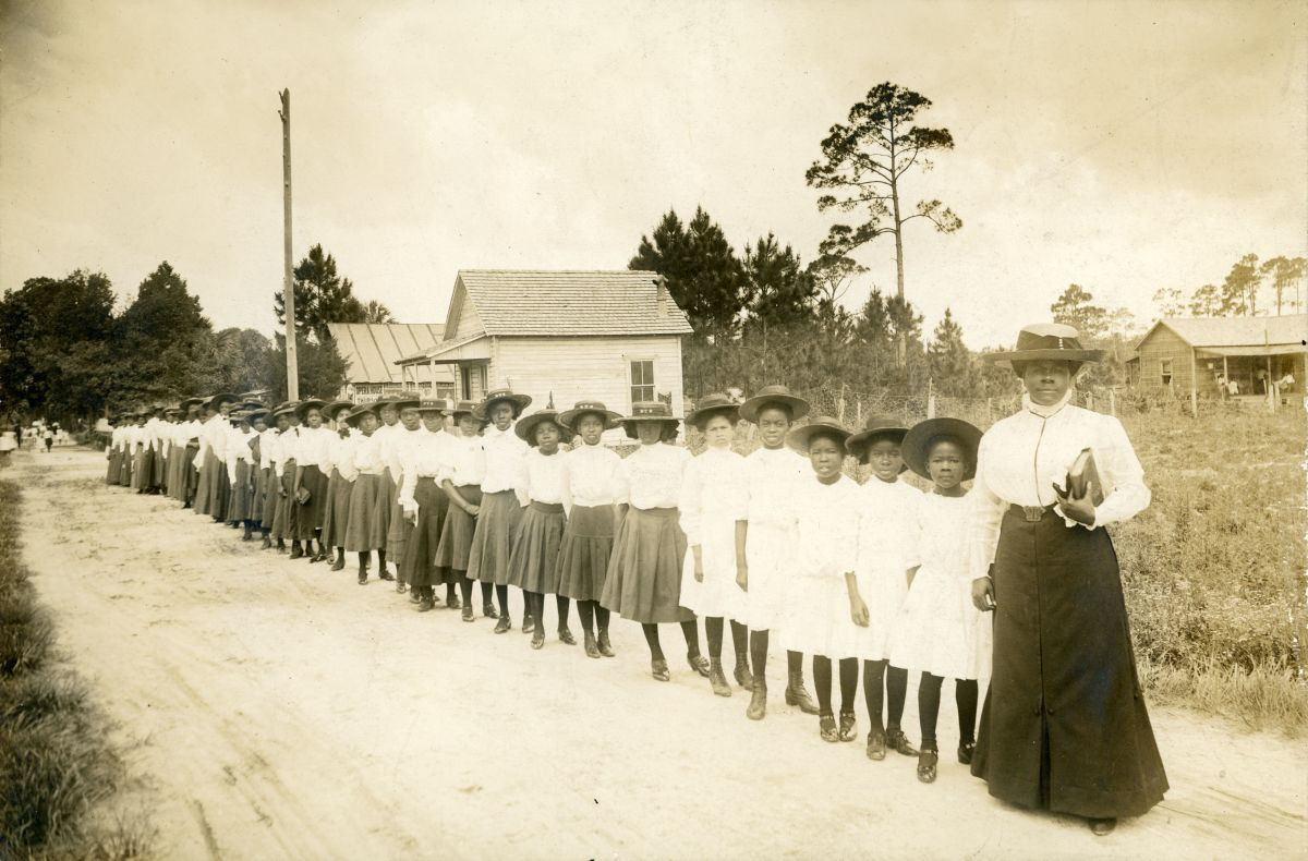 Mary McLeod Bethune with a line of girls from the school, circa 1911. Photo: State Archives of Florida, Florida Memory
