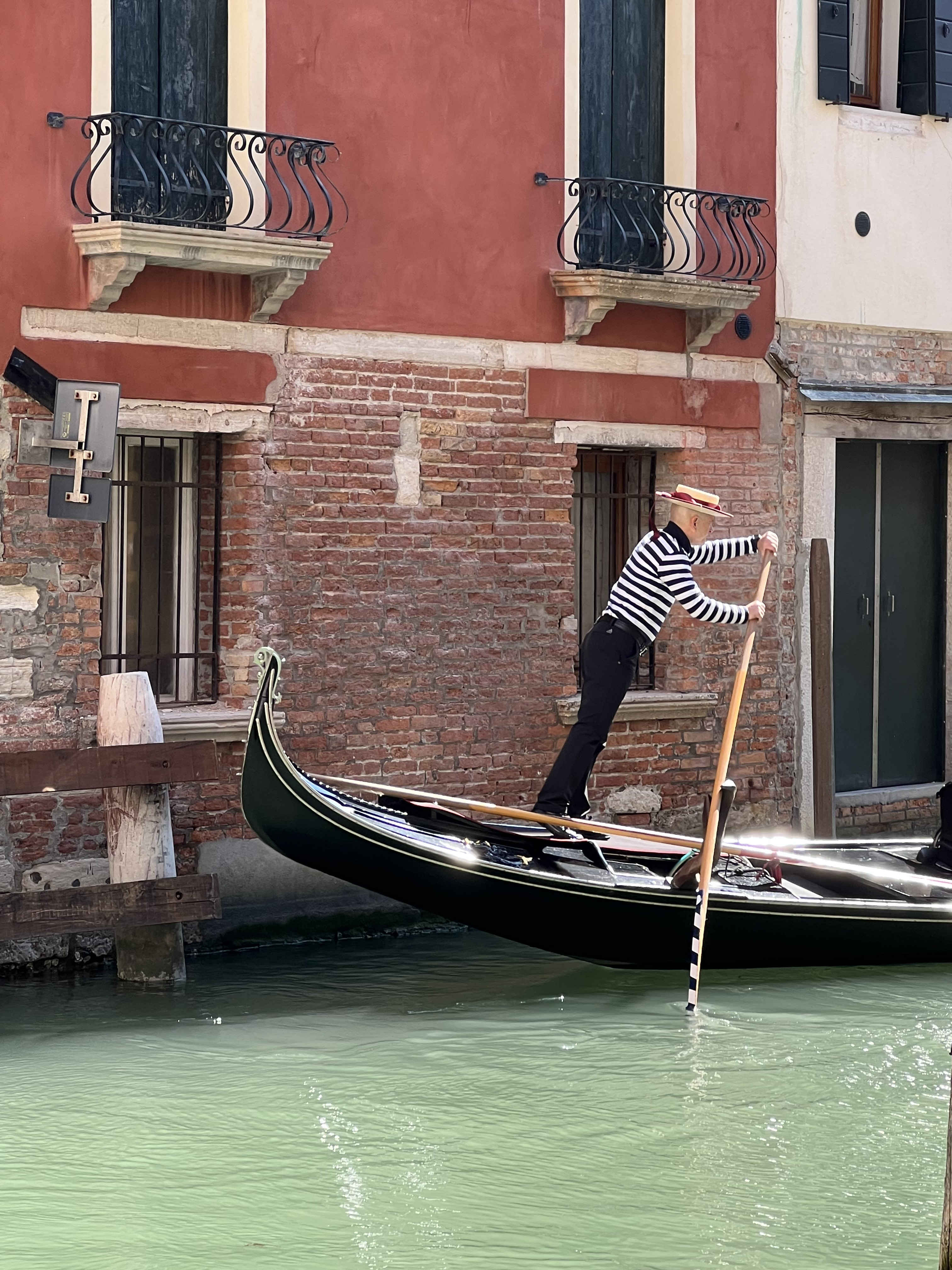 Hi. This is Sarah with another episode of Materially Speaking, where artists and artisans tell their stories through the materials they choose. Sound specialist Mike Axinn and I are in Venice for a special series, meeting three young artisans who learnt their skills over many years and are now bringing a fresh energy to the community. They all have a keen eye on repair, reuse, and sustainability. First, we’re meeting Piero Dri, a remer, who makes oars and oarlocks, or as the Italians call them forcola. Venice, of course, is a world without cars, water laps at our side as we walk and as we pause at the top of a bridge, wide waterways stretched to our left and right and palaces loom high, each marked with striped canal poles. There’s a boat loaded with building supplies, holding wood, wheelbarrows, and a cement mixer. Another with a raised mechanical platform is awaiting a coffin. There are slow boats with workman chatting, slick, fast boats with tourists taking photos and, of course, gondolas.